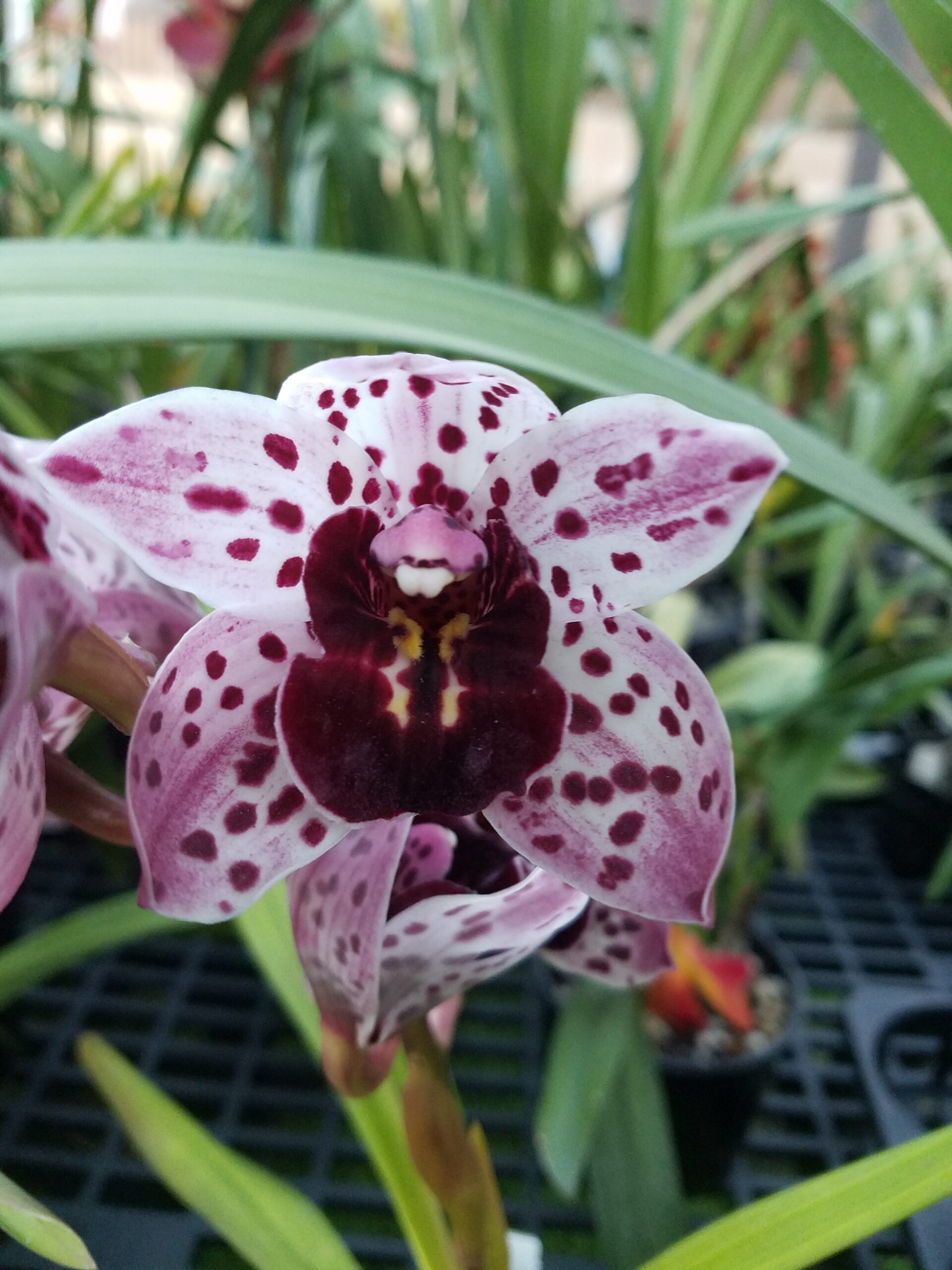 This is the first release of this plant. It is a very nice spotted novelty cymbidium with bold spots and very bright color on upright to arching spikes. A near blooming size division in a gallon pot.