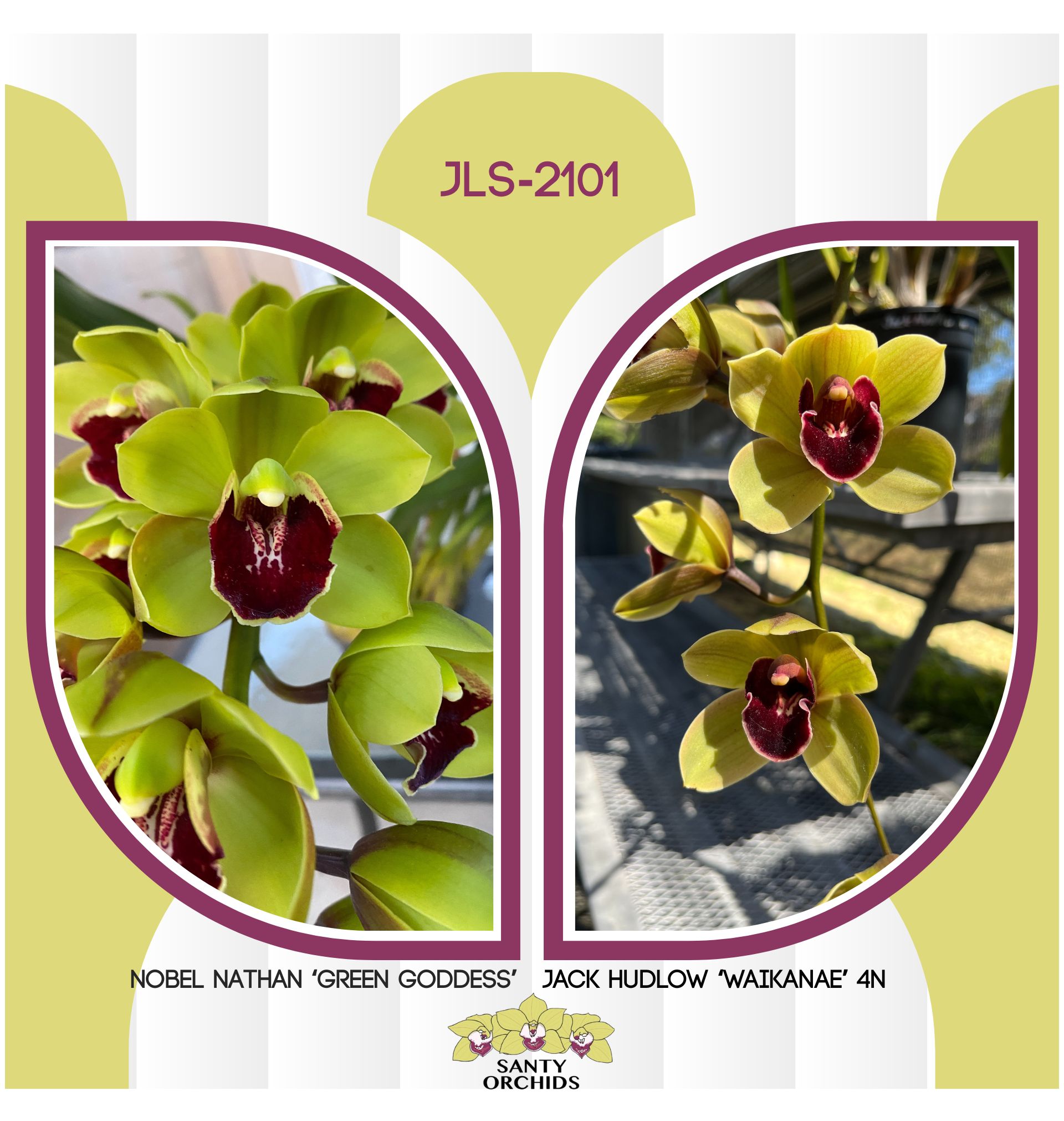 Another new and exciting green pendulous hybrid. We expect green pendulous cymbidiums with bold dark lips. These are single growth seedlings in 3.5 inch pots.